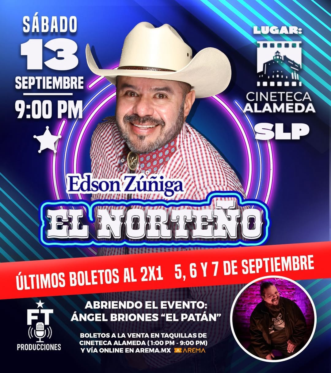 El próximo sábado 13 de septiembre a las 9:00 PM, la Cineteca Alameda será el escenario de una noche de comedia con la presentación de Edson Zúñiga “El Norteño”, uno de los comediantes más reconocidos de México.