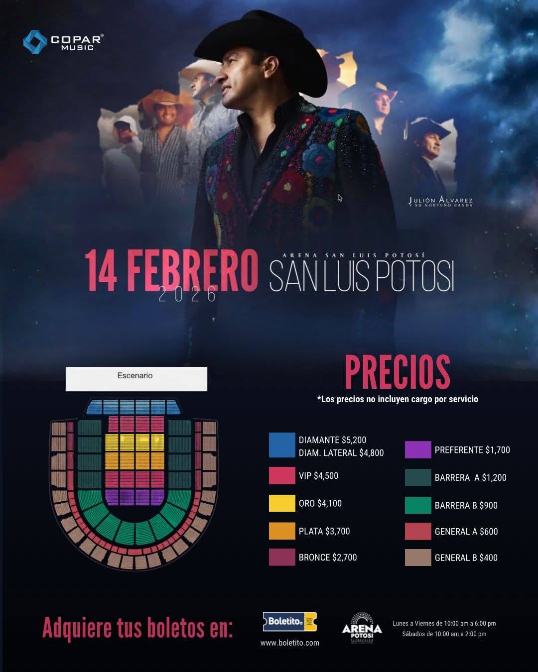 Les compartimos los puntos de venta oficiales para el concierto de Julión Álvarez y su Norteño Banda, que se llevará a cabo el 14 de febrero en la Arena Potosí.