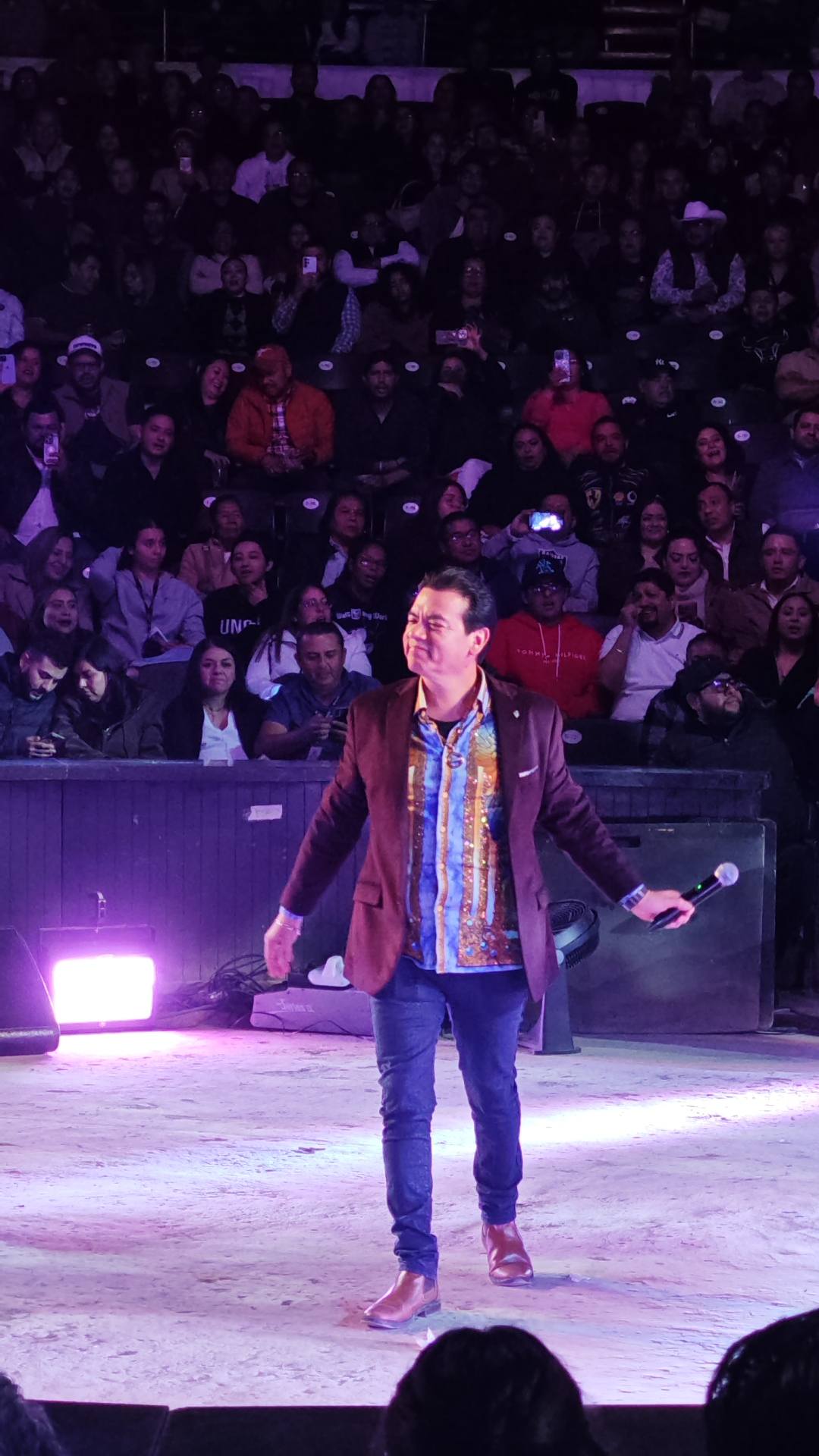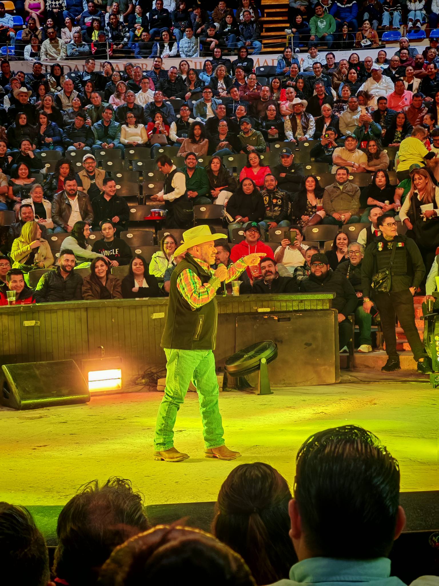 El ambiente en el Palenque de la Fenapo fue de completa complicidad entre artistas y público, destacando la interacción constante que mantuvo el show en todo momento.